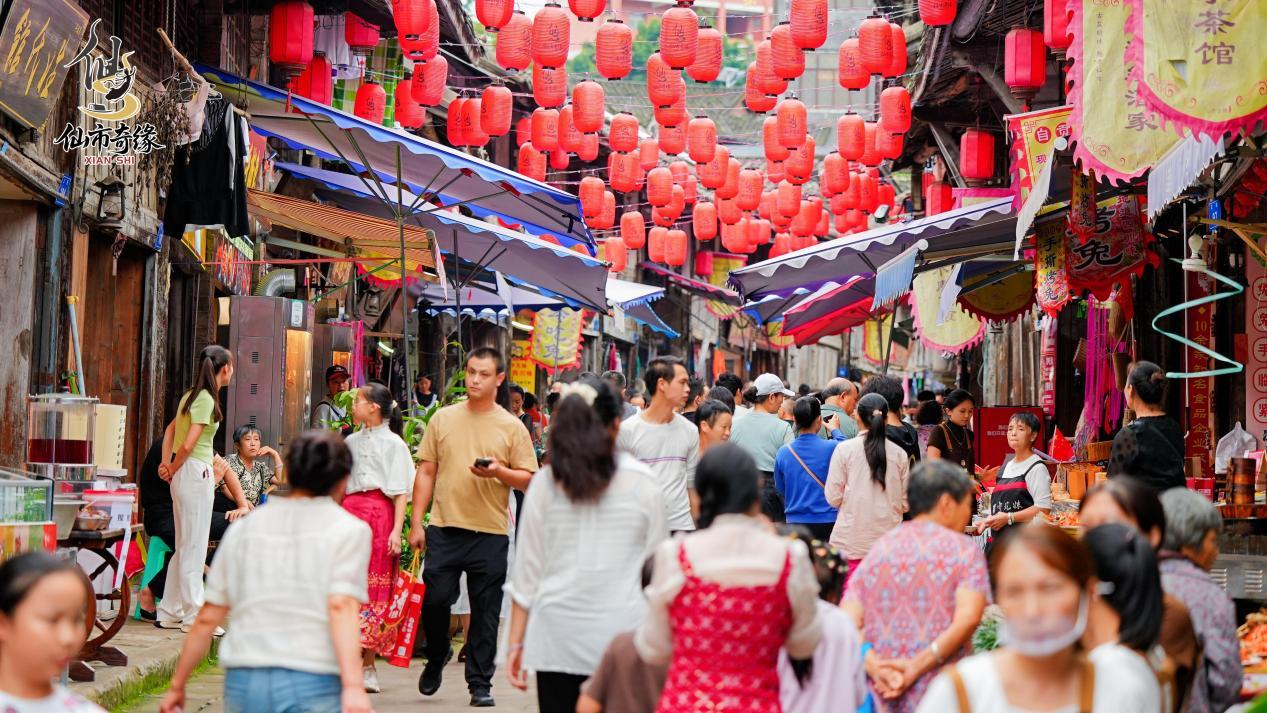 人潮汹涌的仙市古镇。自贡市文化广播电视和旅游局供图
