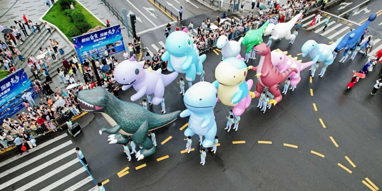 恐龙大巡游现场。自贡市文化广播电视和旅游局供图